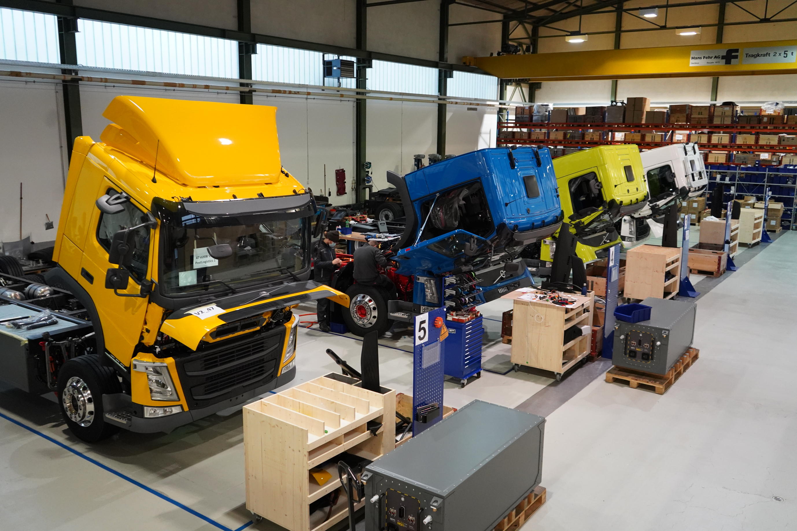 Designwerk entwickelt und fertigt seit 2008 elektrische Lastkraftwagen in Kleinserie, mobile Schnellladegeräte, batteriegepufferte Schnellladestationen im Megawattbereich sowie modulare Hochvolt-Batteriesysteme. Mit den vier unterschiedlichen Lkw-Modellen High Cab, Mid Cab, Mid Cab X und Low Cab bietet der Schweizer E-Mobilitätsspezialist für Transport- wie Entsorgungslogistiker sowie für Kommunen und Agrarbetriebe immer die passende Lösung. Die im neuen High Cab Lowliner eingesetzte Batteriekapazität von 380 Kilowattstunden wird mithilfe der hauseigenen und individuellen Batterieentwicklung und -produktion ermöglicht. Das Ladekonzept – 350 Kilowatt in weniger als 45 Minuten – passt somit auch zu den in der EU vorgeschriebenen Lenkzeiten. Der 40-Tonner hat eine Leistung von 500 Kilowatt (680 PS) und ist mit seinem 1-Gang-Getriebe schalt- und kupplungsfrei. Deutsche Unternehmen haben bereits Fördergeld für 34 High Cab Lowliner beantragt, sodass sie im vierten Quartal 2023 mehr Volumen elektrisch, nachhaltig und rentabler transportieren können.