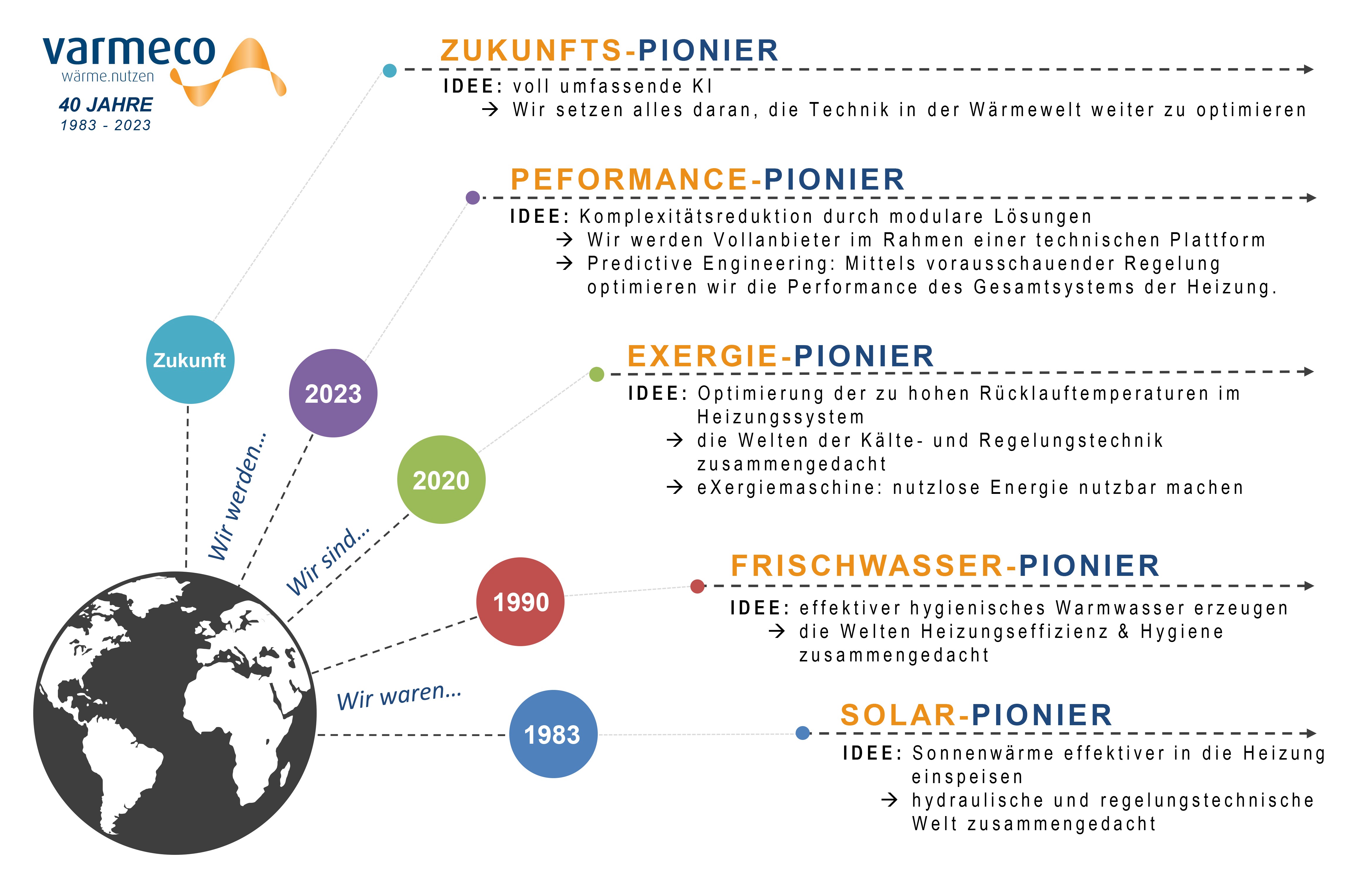 Seit ihrer Firmengründung 1983 gibt die varmeco GmbH & Co. KG (Kaufbeuren) der Heizungswelt Impulse. Das bessere Nutzen von Sonnenwärme, die hygienischere Bereitung von Warmwasser sowie die Steigerung nutzbarer Wärme mit der eXergiemaschine sind einige der Highlights aus der Firmengeschichte. Und die nächsten Innovationen lassen nicht lange auf sich warten …
