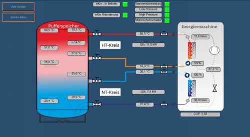eXergiemaschine wirkt. Vergleich zeigt: bessere Temperaturspreizung, weniger Ladezyklen.