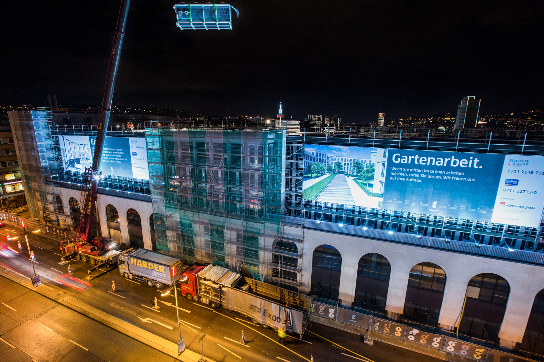 Mit 160-Tonnen-Kran in der Stuttgarter City: Harder Logistics montiert Kühlanlagen in mehreren Nachteinsätzen