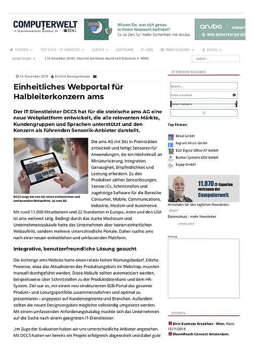 Einheitliches Webportal für Halbleiterkonzern ams