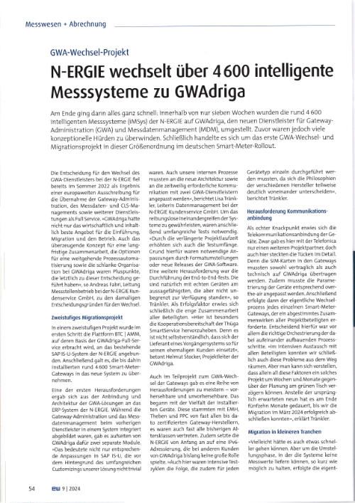 N-ERGIE wechselt über 4600 intelligente Messsysteme zu GWAdriga