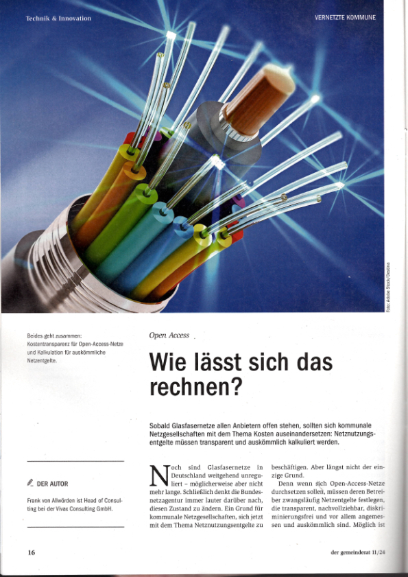 Sobald Glasfasernetze allen Anbietern offen stehen, sollten sich kommunale Netzgesellschaften mit dem Thema Kosten auseinandersetzen: Netznutzungsentgelte müssen transparent und auskömmlich kalkuliert werden.