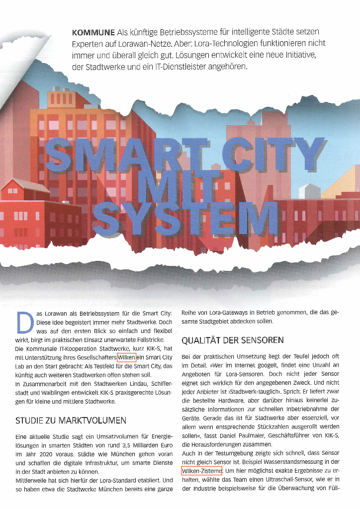 Das LoRaWAN als Betriebssystem für die Smart City: Diese Idee begeistert immer mehr Stadtwerke. Doch was auf den ersten Blick so einfach und flexibel wirkt, birgt im praktischen Einsatz unerwartete Fallstricke. Die Kommunalen IT-Kooperation Stadtwerke KIK-S hat mit Unterstützung ihres Gesellschafters Wilken Software Group ein SmartCity Lab an den Start gebracht: Als Testfeld für die Smart City, das künftig auch weiteren Stadtwerken offen stehen soll.