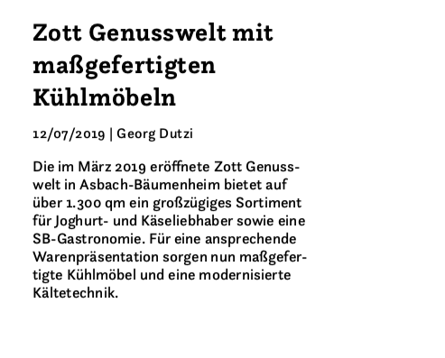 Zott Genusswelt mit maßgefertigten Kühlmöbeln