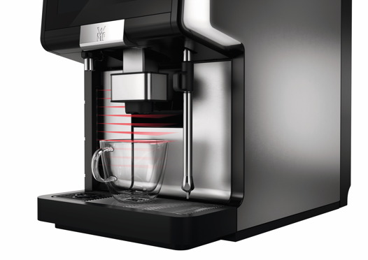 Mit der neuen Sensortechnologie erweitert WMF seine Kaffeevollautomaten WMF 1500 S+ und WMF 5000 S+ um ein weiteres wichtiges Qualitätsfeature. Durch die automatische Justierung des Auslaufs legt jedes Getränk „den kürzesten Weg" zur Tasse zurück, sodass es mit der perfekten Temperatur und in bester Qualität serviert werden kann. Für den kundenindividuellen Einsatz bietet die neue Maschinenoption verschiedene Anwendungsmodi. Im ersten Sensormodus wird das ausgewählte Getränk nur dann produziert, wenn ein entsprechender Becher erkannt wurde – ein besonderes Sicherheitsplus für Selbstbedienungskonzepte. In einem zweiten Modus erkennt die Maschine die Tasse und stellt den Auslauf automatisch auf den richtigen Abstand ein. Dieses Anwendungsszenario ist ideal für Gastronomien oder Verpflegungsstationen, an denen das gleiche Getränk in unterschiedlichen Tassengrößen ausgegeben wird, beispielsweise in Büros. Im dritten Modus ermittelt der Sensor die Höhe des verwendeten Bechers, wodurch das Anzeigemenü nur jene Getränke anzeigt, die dieser Bechergröße entsprechen. Anschließend bewegt sich der Auslauf automatisch auf die optimale Höhe für jedes Rezept – ein zusätzliches Plus hinsichtlich Produktivität und Zeitgewinn.
