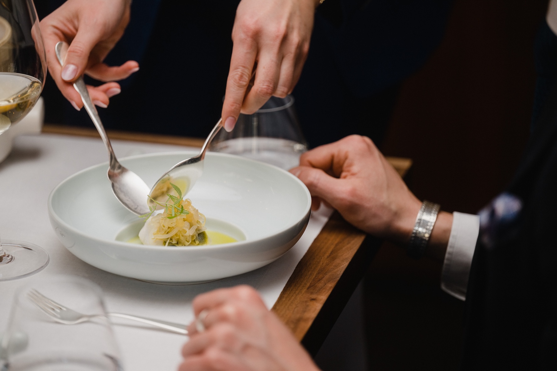 „Der Rahmen ist urban, die Menschen sind authentisch und das, was auf den Tellern und in den Gläsern serviert wird, ist von höchster Güte. Besonders relevant: Wir sind von ganzem Herzen Gastgeber, mit Ecken und Kanten.“ – Nach diesem Credo empfängt Tim Raue gemeinsam mit Geschäftspartnerin Marie-Anne Wild seit 2010 Gäste in ihrem Restaurant mitten in Berlin. Seitdem hat das Restaurant zahlreiche Auszeichnungen erhalten, darunter zwei Michelin Sterne und Platz 40 auf der Liste der „World’s 50 Best Restaurants 2023“. Grund dafür ist die asiatisch inspirierte Küche, die es so kein zweites Mal gibt – und die stetige Weiterentwicklung auf höchstem kulinarischem Niveau. So bietet das Restaurant seit Mitte 2023 auch ein Berlin-Menü als Hommage an die Heimatstadt der beiden Gastronomen an. Die Vielfalt an Geschmäckern, Texturen und Aromen sorgt stets für komplexe Gaumenfreuden, die am gedeckten Tisch in einem lebendigen Setting aus hochwertigen Materialien präsentiert werden: angefangen bei Elementen aus Holz und Leinen über farbiges Porzellan bis hin zu versilbertem Besteck. Letzteres stammt aus dem Hause HEPP, mit dem Raue und Wild eine jahrzehntelange Partnerschaft verbinden. Bereits Ende der 90er-Jahre begeisterte sich das Duo für die Kollektion CARLTON: „Die angenehmen Rundungen schmiegen sich perfekt in die Hand, die klare Formgebung passt zu unserem Verständnis von Design und die Serie beinhaltet sämtliche für uns relevanten Besteckteile“.