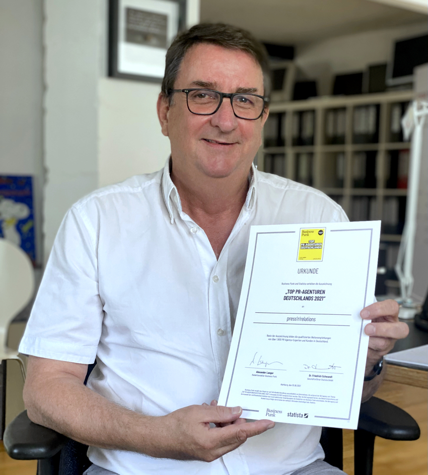 Bei einer Umfrage des Wirtschaftsmagazins Business Punk und des unabhängigen Marktforschungsinstituts Statista wurde die Ulmer PR-Agentur Press'n'Relations unter die besten PR-Agenturen Deutschlands gewählt. Die Befragung wurde erstmals durchgeführt und berücksichtigt die Bewertung von Experten (Mitarbeiter von PR-Agenturen und Freischaffende) und Kunden (Mitarbeiter in PR-, und Marketingabteilungen von Unternehmen), die im Zeitraum vom 15. Februar bis 19. März 2021 abstimmen konnten. Insgesamt nahmen 1.748 Personen an der Umfrage teil, davon 751 Experten und 997 Kunden, wobei alle Befragungen online stattfanden. Die PR-Agenturen mit den meisten Nennungen und Empfehlungen erhielten die Auszeichnung ,,Top-PR-Agentur Deutschlands".