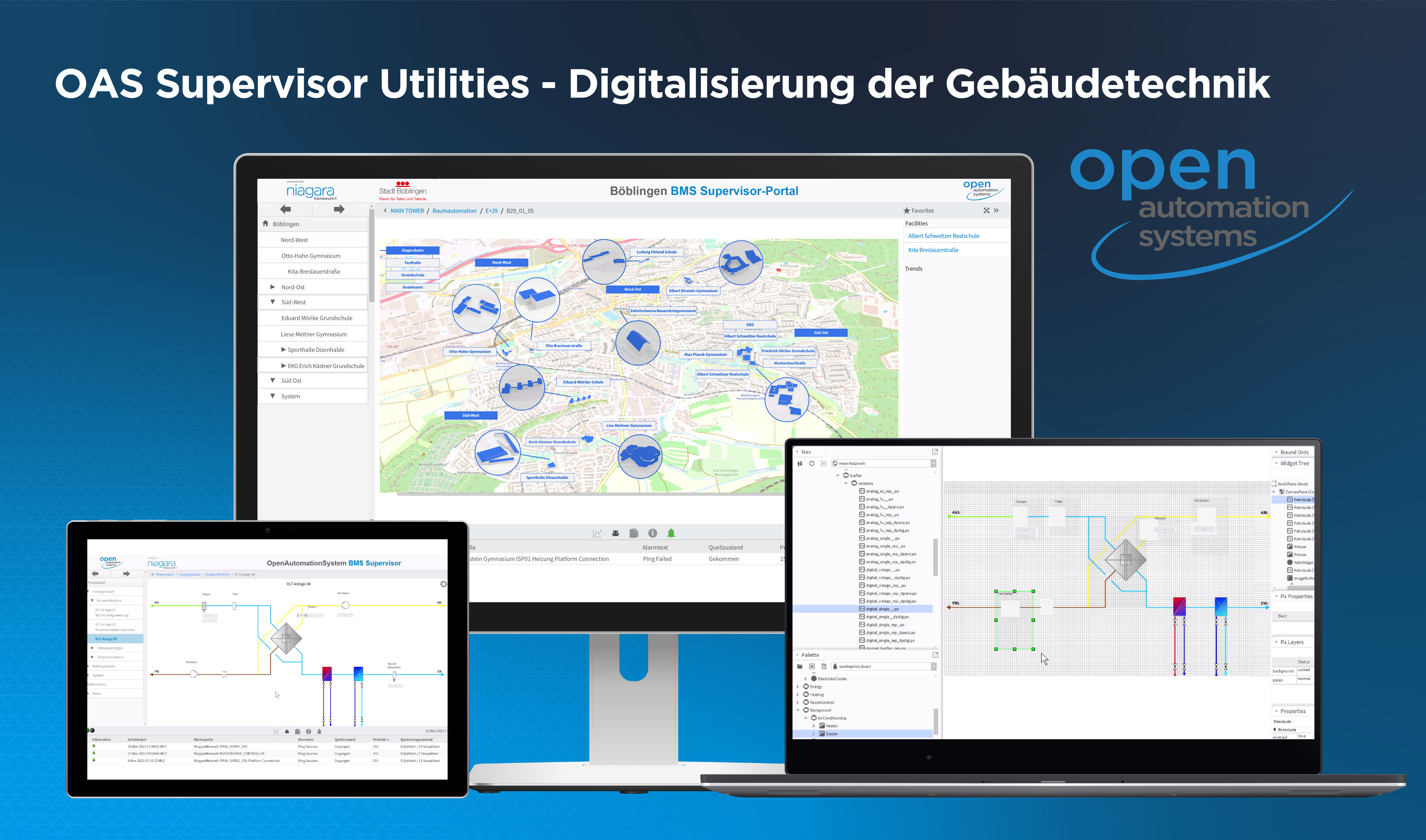 OAS Open AutomationSystems GmbH ist Ihr Tridium Authorised Distributor für offene Energiemanagement- und Gebäudeautomationssysteme zur durchgängigen Digitalisierung der technischen Gebäudeausrüstung. Unsere cloudbasierten Portallösungen bieten eine sichere, zuverlässige und problemlose Systemintegration mit hoher Benutzerfreundlichkeit. Unsere modularen Niagara Framework® Komponenten und OEM- Produktentwicklungen kommunizieren mit BACnet® und anderen gängigen Protokollen und bieten eine grenzenlose Integration von der Feldebene über die Automationsebene bis hin zur Cloud.