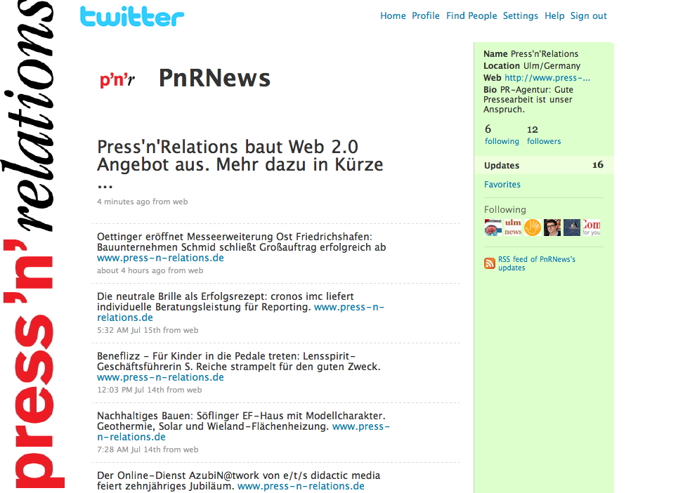 Bei Press’n’Relations gibt es ab sofort Twitter und mehr