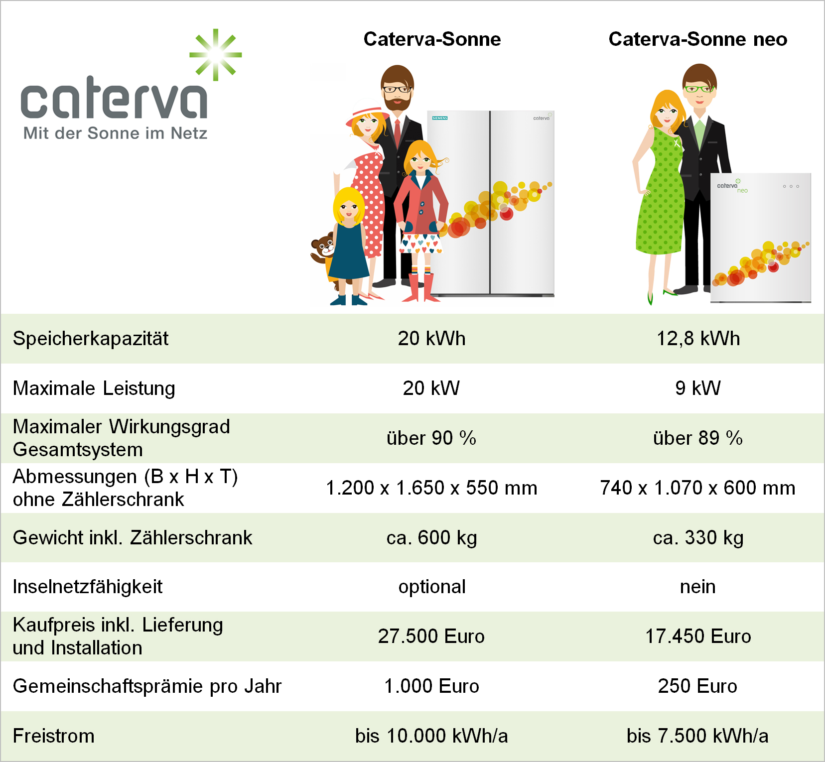 Strom verbrauchen ohne Sorgen ... durch "20 Jahre Freistrom" – mit PV-Anlage und einem Caterva-Stromspeicher