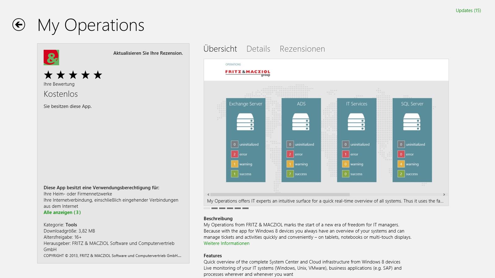FRITZ & MACZIOL gibt Verfügbarkeit der System Center-App "My Operations" im Windows Store bekannt