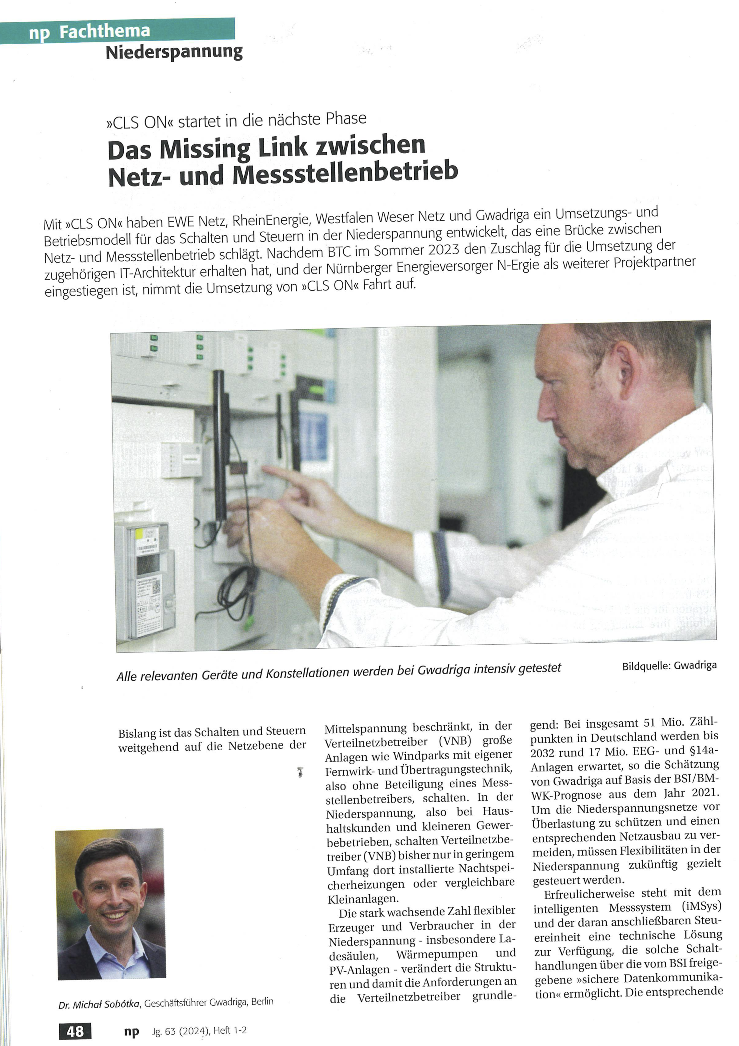 Mit CLS ON haben EWE NETZ, RheinEnergie, Westfalen Weser Netz und GWAdriga ein Umsetzungs- und Betriebsmodell für das Schalten und Steuern in der Niederspannung entwickelt, das eine Brücke zwischen Netz- und Messstellenbetrieb schlägt. Nachdem BTC im Sommer 2023 den Zuschlag für die Umsetzung der zugehörigen IT-Architektur erhalten hat und der Nürnberger Energieversorger N-ERGIE als weiterer Projektpartner eingestiegen ist, nimmt die Umsetzung von CLS ON Fahrt auf.