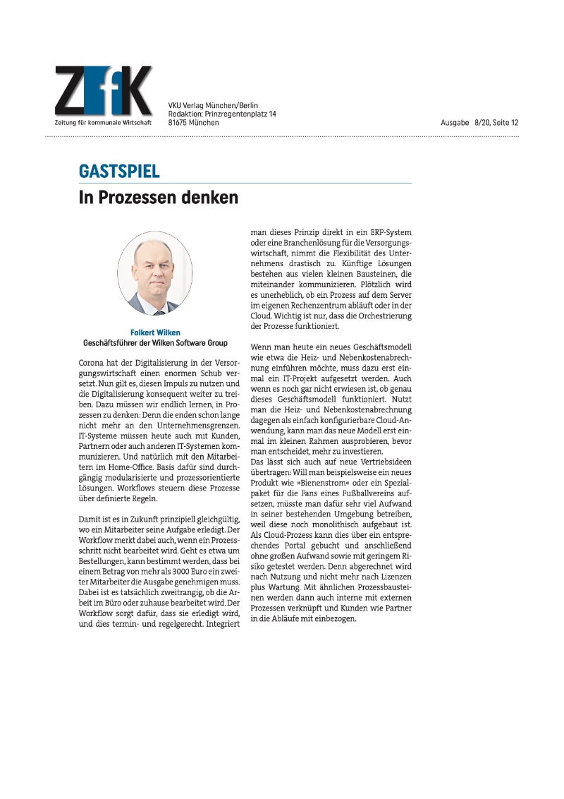 Corona hat der Digitalisierung in der Versorgungswirtschaft einen enormen Schub versetzt. Nun gilt es, diesen Impuls zu nutzen und die Digitalisierung konsequent weiter zu treiben. Dazu müssen wir endlich lernen, in Prozessen zu denken.